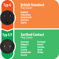 - Sistema de conexión enchufe: Tipo E y F (Contacto de protección con agujero de puesta a tierra)