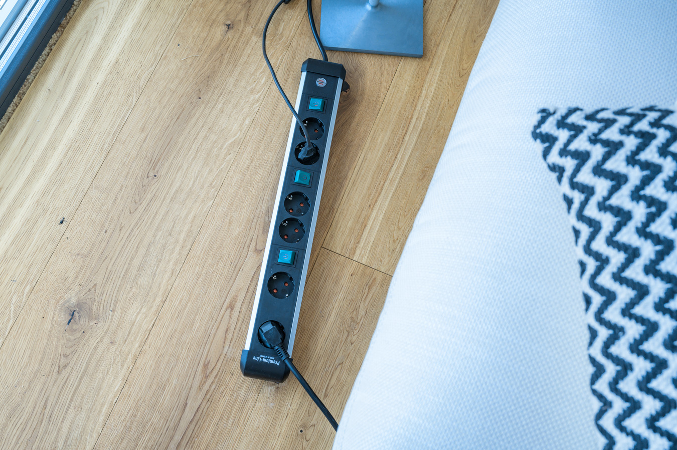 - Regleta enchufes de alta calidad con una carcasa elegante, intemporal y estable de aluminio con superficie insensible y anodizada mate
